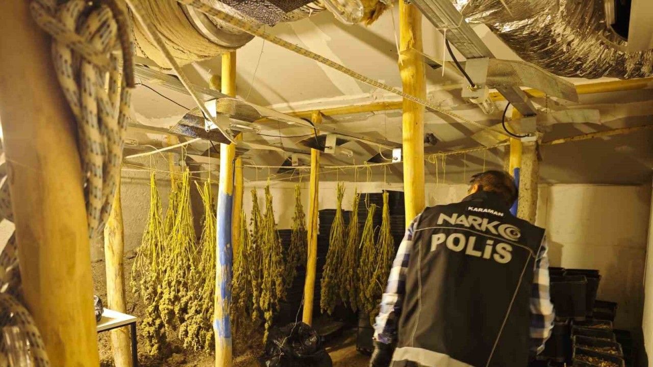 Edinilen bilgiye göre, Karaman İl Emniyet Müdürlüğü Narkotik Suçlarla Mücadele Şubesi ekipleri, Çeltek Mahallesi’nde bulunan 3 katılı bir apartmanda çatı katının gizli seraya çevrilerek kenevir yetiştirildiği bilgisine ulaştı. Cumhuriyet Başsavcılığının koordinesinde harekete geçen ekipler kenevir yetiştirilen binanın çatı katına operasyon düzenledi. Operasyonda K.G. ve M.Y. isimli şahıslar yakalanarak gözaltına alırken, çatı katının gizli seraya çevrilerek kenevir yetiştirildiği belirledi. Yapılan aramalarda; 16.5 kilo esrar, 160 gram kenevir tohumu ile uyuşturucu imali ve ticaretinde kullanılan çeşitli malzemeler ele geçirildi. Emniyetteki işlemlerin ardından adliyeye sevk edilen şüphelilerden M.Y., çıkarıldığı mahkemece tutuklanarak cezaevine gönderilirken, diğer şahıs emniyetteki ifadesinin ardından serbest bırakıldı.