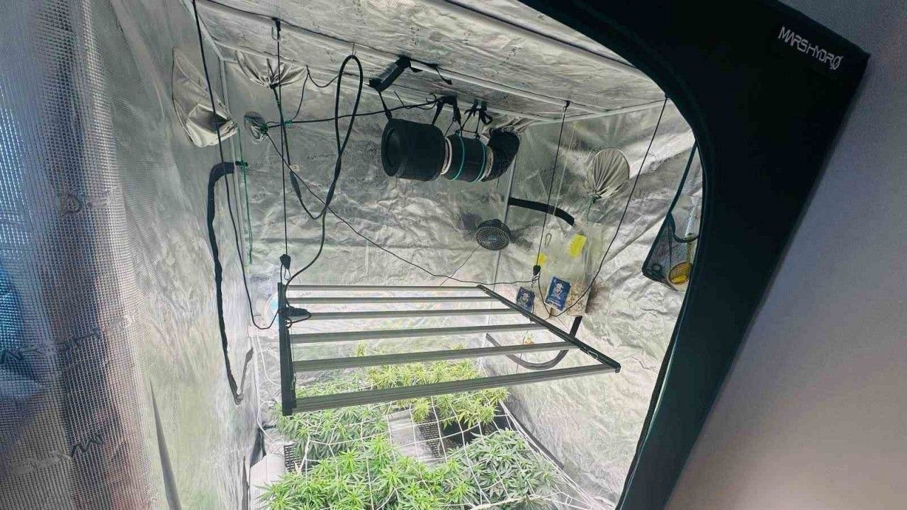 Karaman’da evin salonuna kurdukları kamp çadırını gizli seraya çevirerek iklimlendirme ve sulama sistemiyle kenevir yetiştiren 3 kişi jandarmanın operasyonla yakalandı.