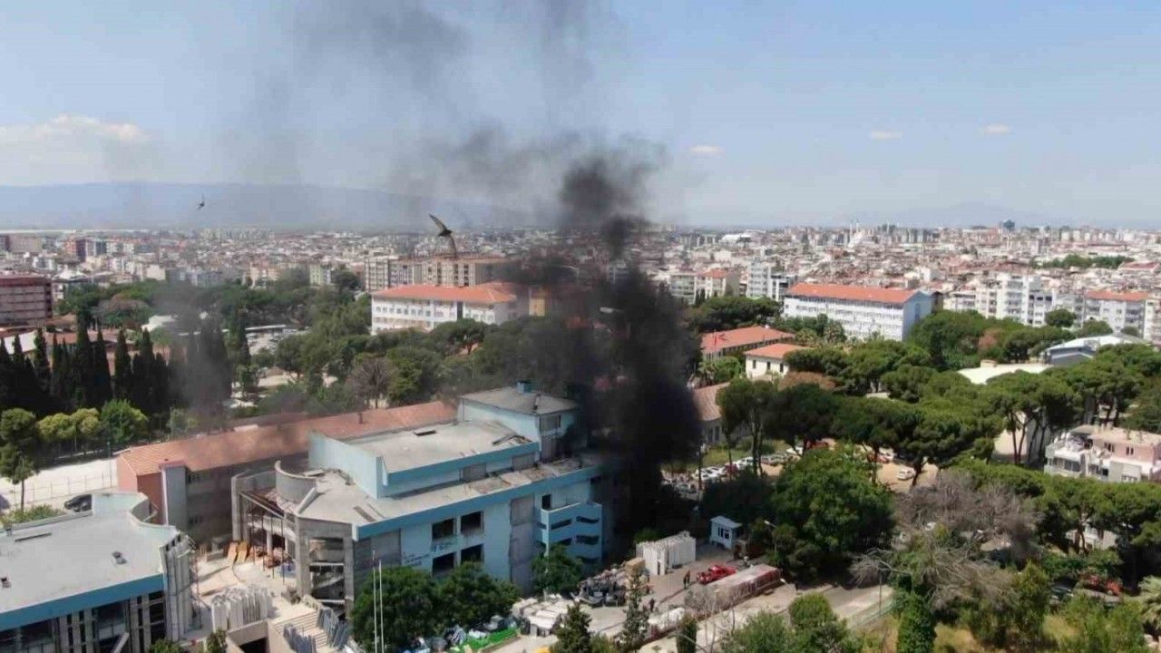 Aydın’ın Efeler ilçesinde İl Kültür ve Turizm Müdürlüğü Kültür Merkezi’nde güçlendirme çalışmaları sırasında çıkan kıvılcımlar izolasyon malzemelerine sıçrayarak yangına neden olurken, şehir merkezinde gökyüzünü kaplayan kara dumanlar görenleri panikletti.