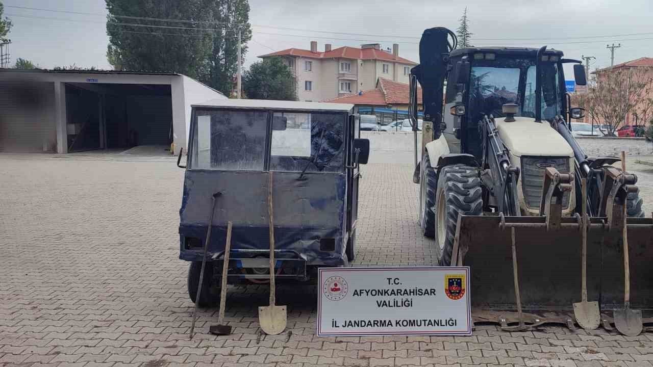 Afyonkarahisar’da kepçe diye adlandırılan iş makinesi ile kaçak kazı yaparak define arayan şahıslar jandarma tarafından yakalandı.