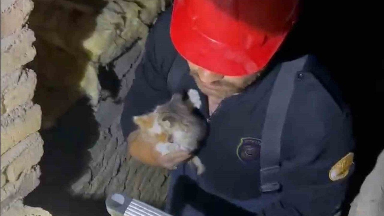 Kırıkkale’de bir apartmanın havalandırma boşluğuna düşen 2 yavru kedi, itfaiye ekiplerinin operasyonuyla kurtarıldı.