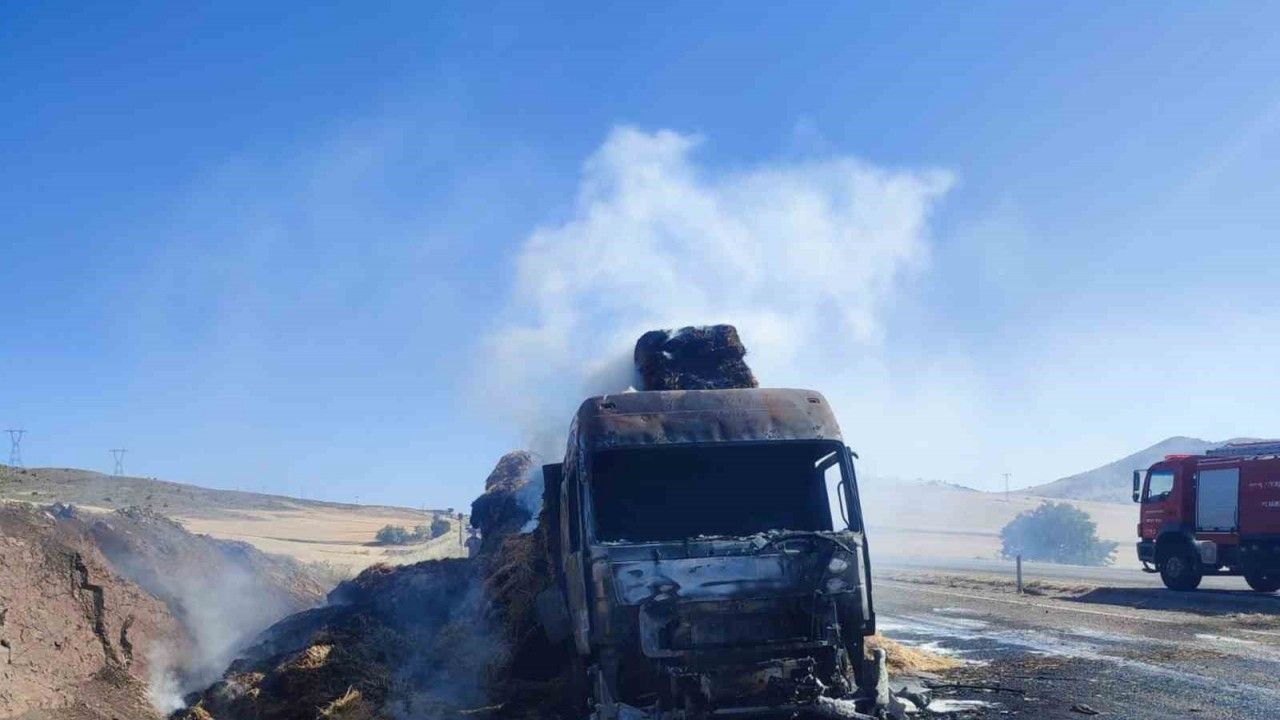 Kırıkkale’de seyir halinde ilerleyen saman balyası yüklü tırda çıkan yangında, büyük çapta maddi hasar meydana geldi.