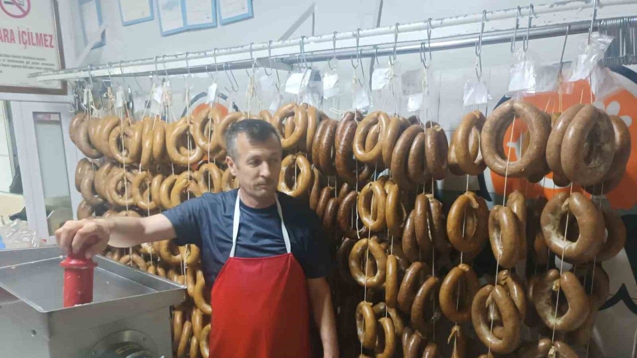 Kırka’da kurban etleri sucuk oluyor