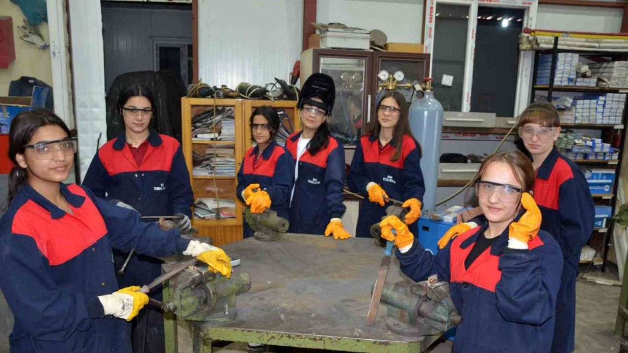 Manisa’nın Kırkağaç ilçesinde Mesleki ve Teknik Anadolu Lisesi Metal Teknolojisi Bölümü’nde eğitim gören 7 kız öğrenci, ileri düzeyde kaynak yapıp, örste demir dövüyor, direnç kaynağı, oksigaz kaynağı, elektrik ark kaynağı, gazaltı kaynağı ve tig kaynağı yöntemlerini uygulayarak, erkek mesleği olarak bilinen kaynakçılıkta ön yargıları kırıyor.