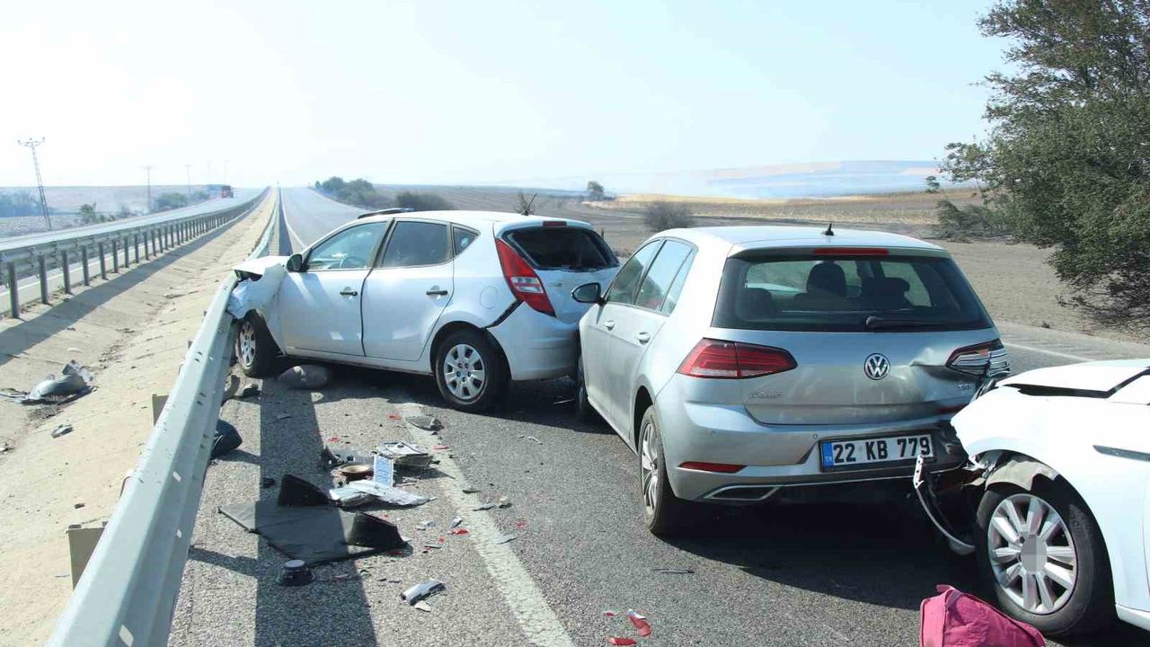 Kırklareli’nin Babaeski-Lüleburgaz yolu arasında çıkan yangnda yoğun duman zincirleme kazaya sebep oldu. Kazada 6 kişi yaralandı.
