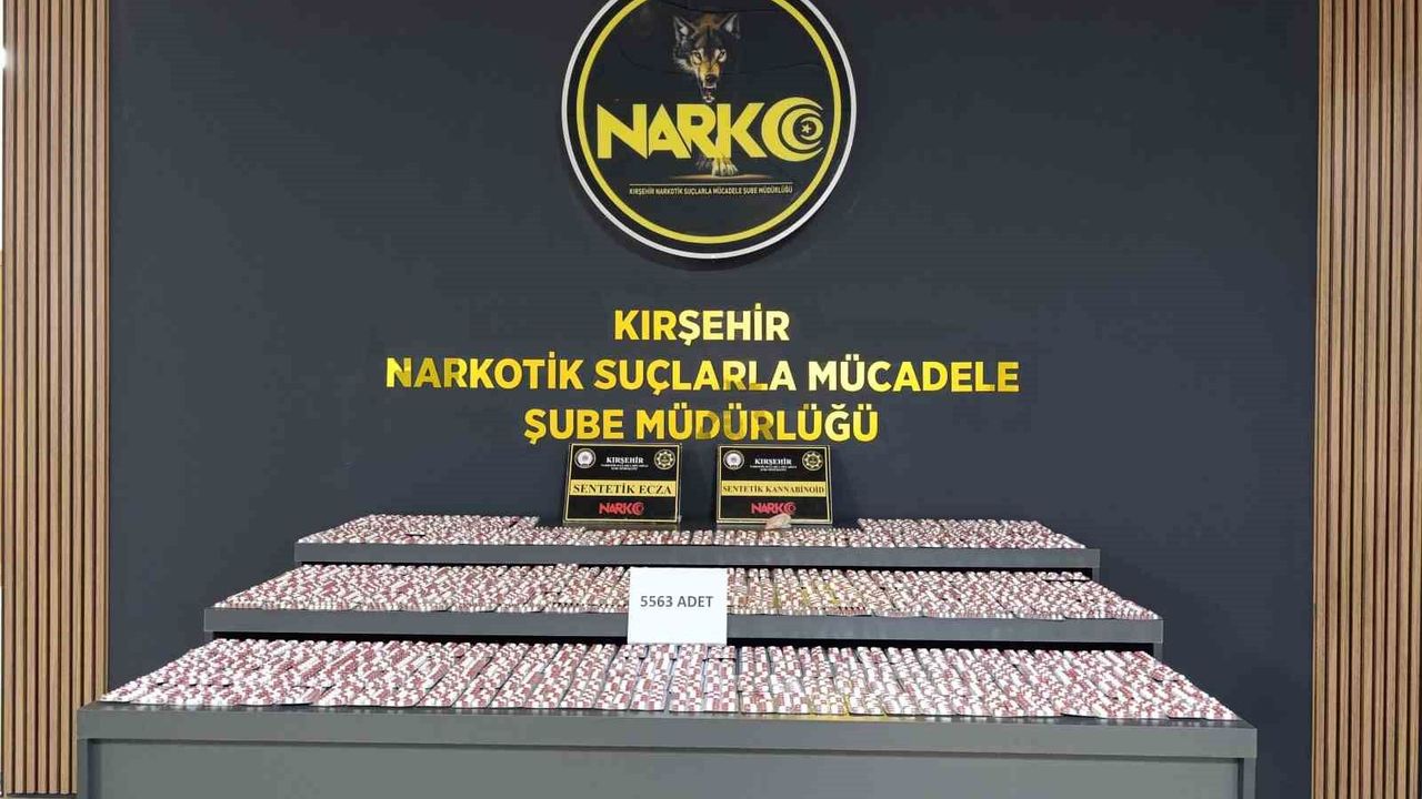 Kırşehir İl Emniyet Müdürlüğü Narkotik Suçlarla Mücadele ve İstihbarat Şube Müdürlüklerince yürütülen çalışmalar çerçevesinde, Kırşehir-Ortaköy yolu üzerinde şüphe üzerine bir araç durduruldu. Durdurulan araçta arama yapıldı. Yapılan kontrollerde; 5 bin 563 adet sentetik hap ile 44 gram sentetik uyuşturucu hammaddesi ele geçirildi.