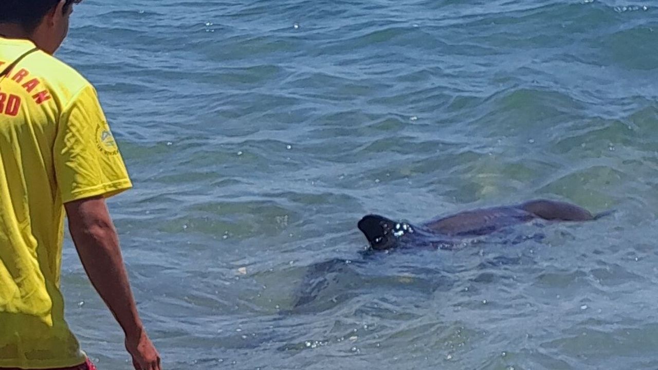 Mersin’de kıyıya vuran yunus sahildeki vatandaşlar ve görevliler tarafından tekrar denize salındı.