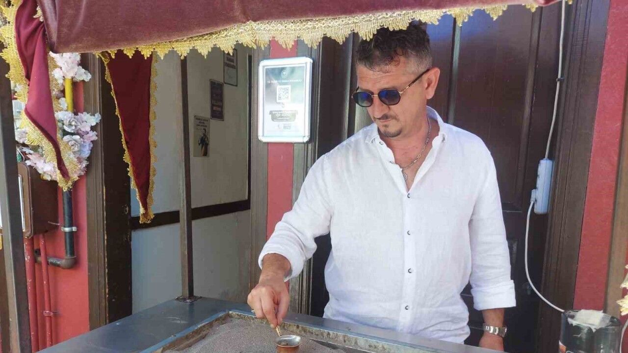 Eskişehir’in en gözde bölgelerinden biri olan tarihi Odunpazarı Evleri’ndeki kahve ustası Ersin Kortan, kızgın kumda pişirdiği kahveleri özel sunumuyla müşterilerine ikram ediyor. Birinci nesil kahveci olduğunu belirten Kortan, kahvelerini kendine özgü pişirme yöntemiyle hazırladığını belirterek, "Biz kendi kahvemizi kendimiz öğütüyoruz. Orta kavrulmuş, ince çekilmiş kahvelerimiz taze olarak hazırlanırken, kumda 96-98 derece sıcaklıkta bakır cezvenin her yerine nüfuz eden ısı sayesinde kahve daha kaliteli bir kıvam almış olduğundan dolayı kahvenin kavrulması ve öğütülmesi en ideal şekilde gerçekleşiyor" dedi.