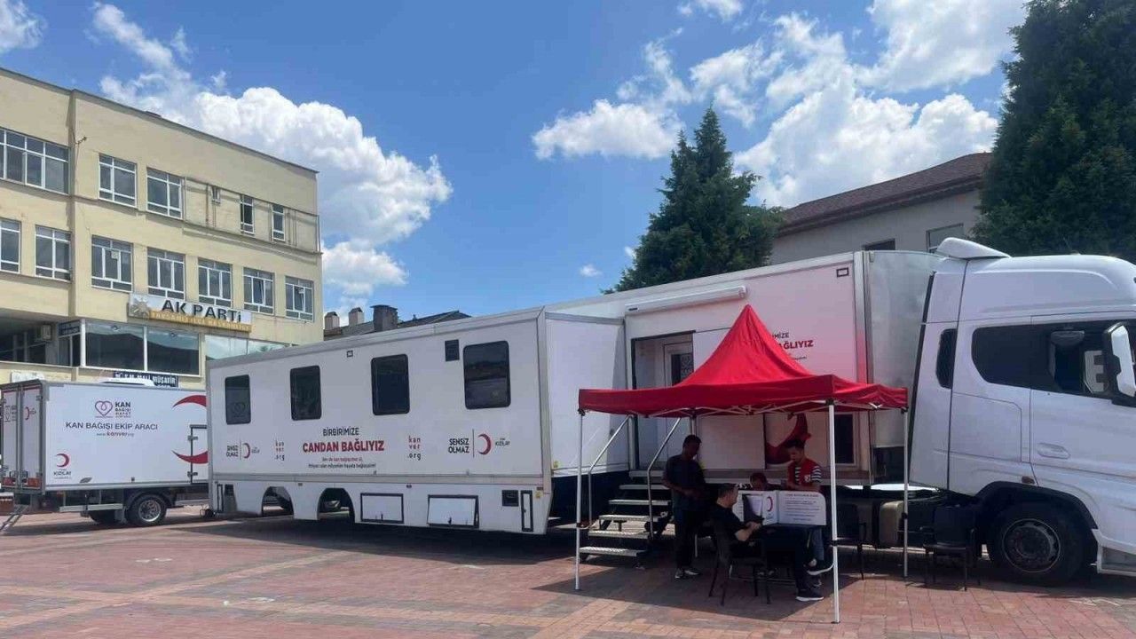Kızılay’ın gezici kan bağışı tırı, kan stoklarına destek olmak amacıyla Tavşanlı Cumhuriyet Meydanı’nda vatandaşlardan kan bağışı kabul ediyor.