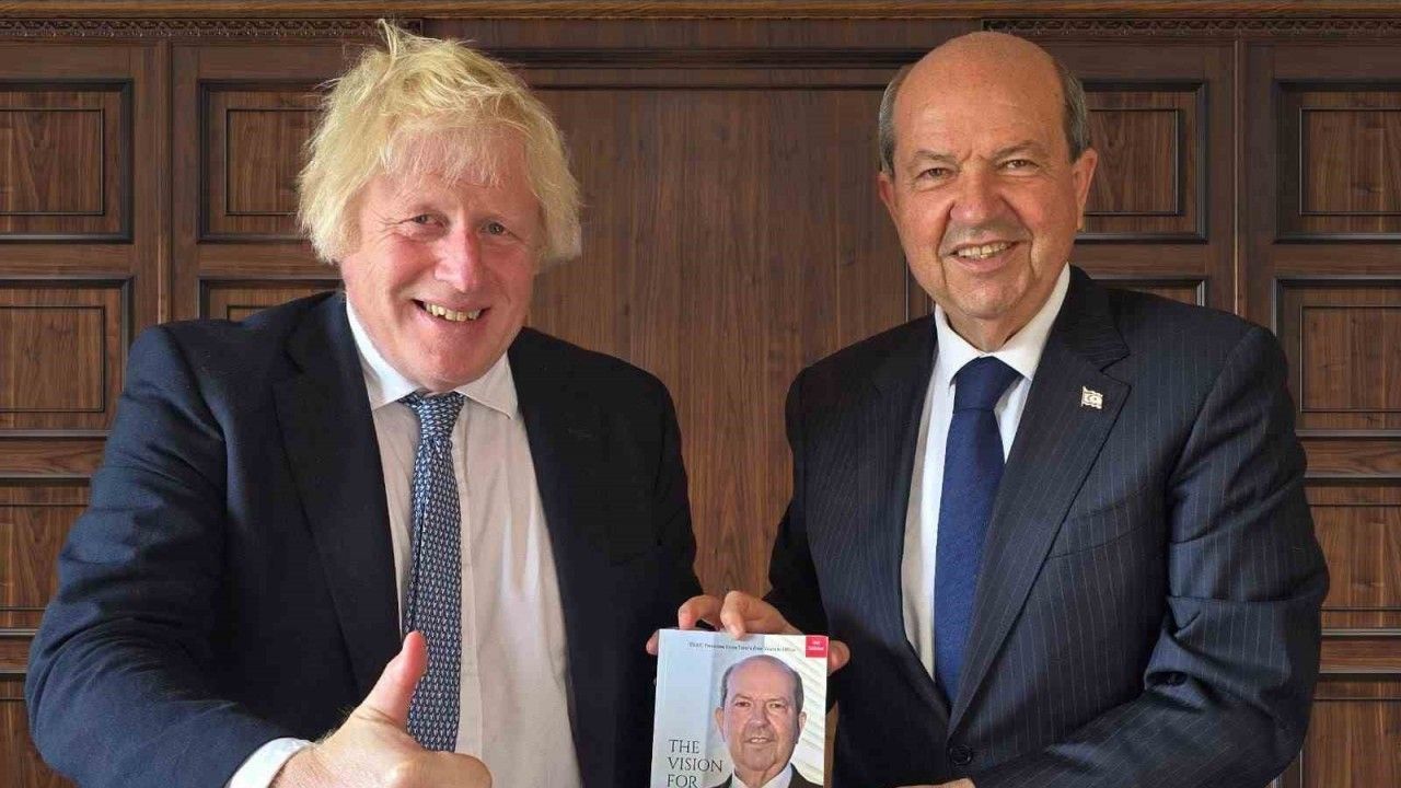 KKTC Cumhurbaşkanı Ersin Tatar, resmi ziyaret düzenlediği İngiltere’nin başkenti Londra’da temaslarını sürdürüyor. Tatar, Londra temasları kapsamında Birleşik Krallık eski Başbakanı Boris Johnson ile özel bir görüşme gerçekleştirdi. Cumhurbaşkanı Tatar, görüşmenin sonunda Boris Johnson’a "The Vision for Two States in Cyprus" adlı kitabın ikinci baskısını hediye etti.