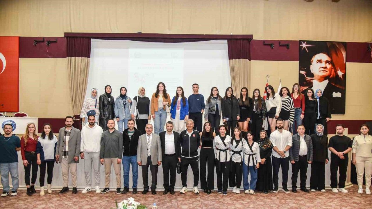 Selamlama konuşmasını gerçekleştiren Rektör Prof. Dr. Mehmet Gavgalı, kendi hayatından örnekler vererek bir dönem tekvando ile ilgilendiğini ifade etti.