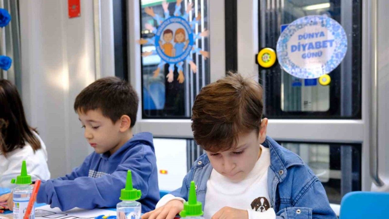 Kocaeli Büyükşehir Belediyesi’ne bağlı Lokomotif Çocuk Köyü ve UlaşımPark işbirliğinde gerçekleştirilen programda, diyabetli çocuklar için özel bir tramvay hazırlandı. Balonlar ve farkındalık afişleriyle süslenen tramvayda resim ve mozaik atölyeleri kuruldu. Çocuklar, tramvay içerisinde sanat etkinliklerine katılarak diyabet temalı resimler çizdi.