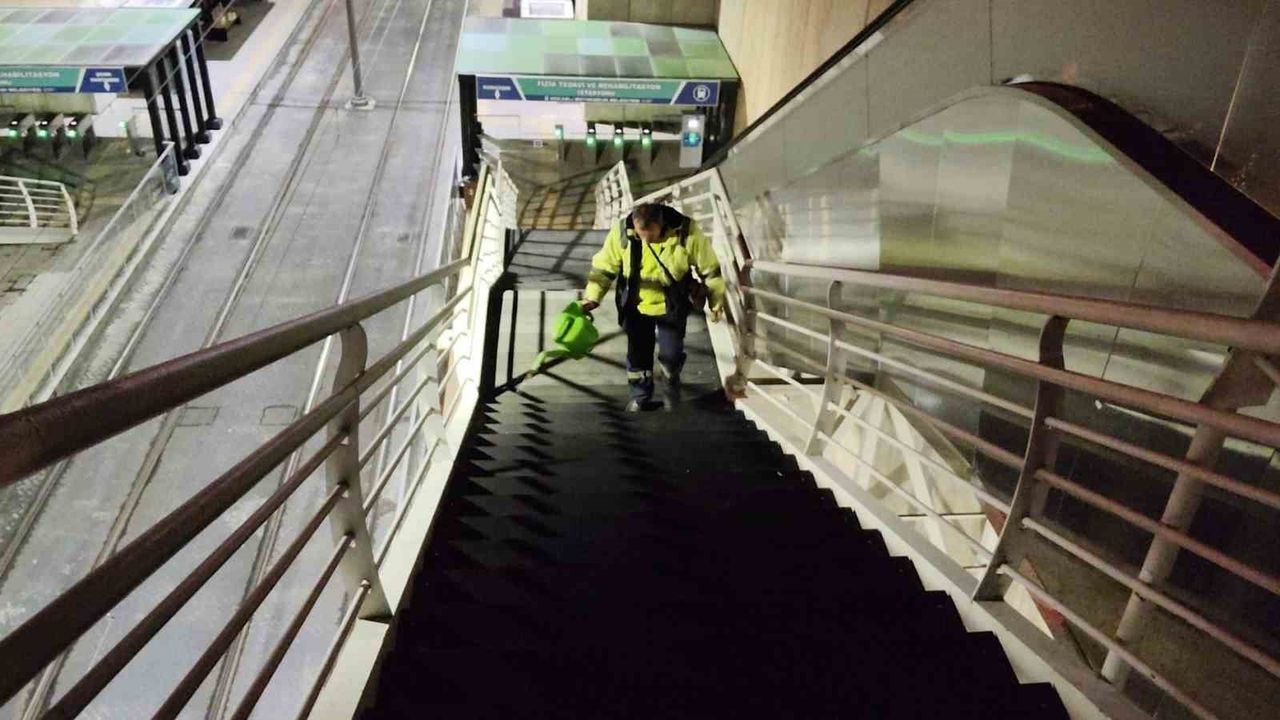 Kocaeli'de belediye ekipleri, kış aylarında vatandaşların güvenli ulaşımını sağlamak amacıyla üst geçitlerde buzlanma ve don olaylarına karşı özel solüsyonla çalışma yürütüyor.