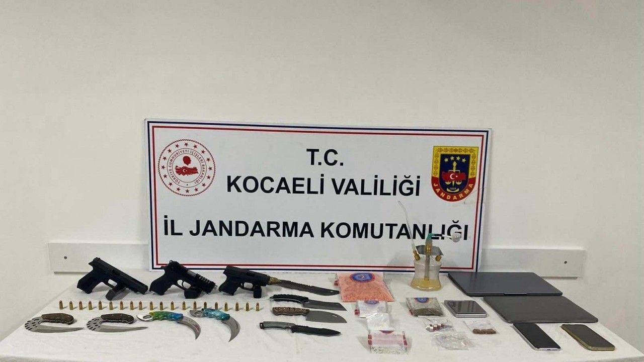 Kocaeli’nin Dilovası ilçesinde jandarma ekiplerinin bir şüphelinin ikametinde yaptığı aramada 800 uyuşturucu hap, 3 ruhsatsız tabanca ve 8 bıçak ele geçirildi.