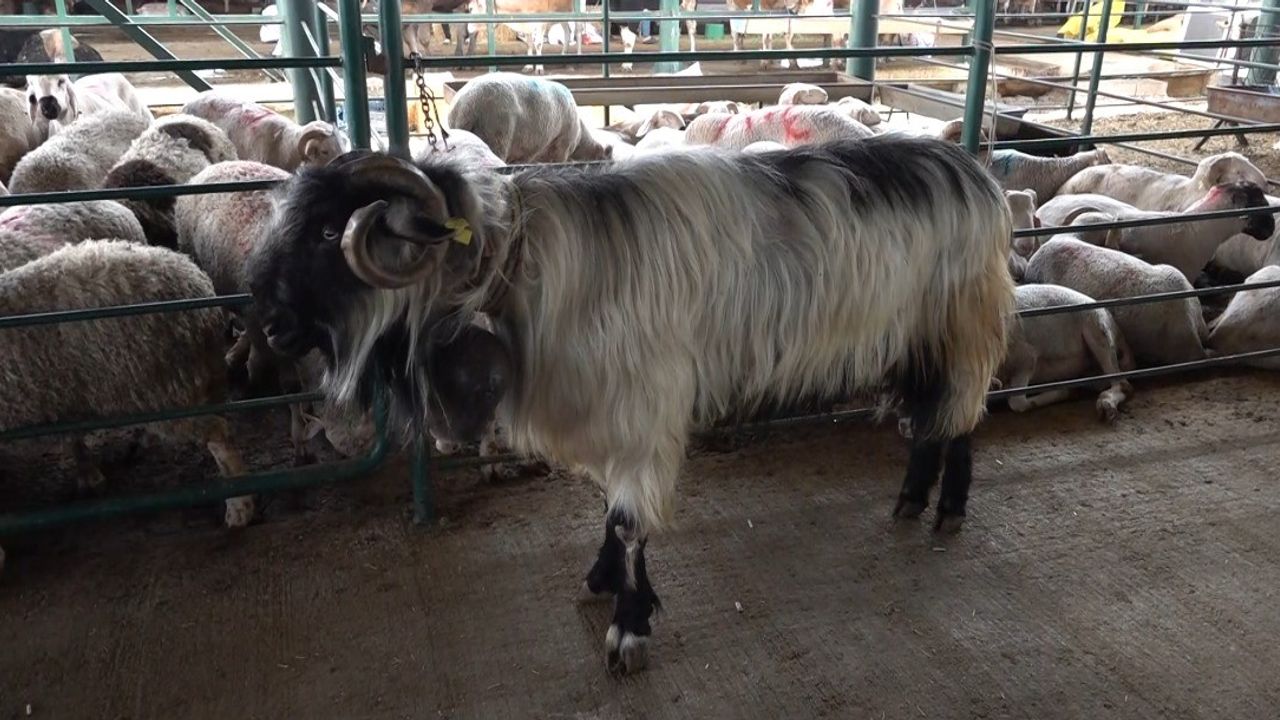 Eskişehir Büyükşehir Belediyesi Hayvan Pazarı’nda satışa sunulan 100 kilodan fazla ağırlığı olan ’Kocaoğlan’ isimli keçi, 50 bin lira verecek müşterisini bekliyor.