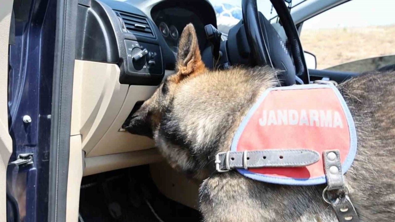 Aksaray’da jandarmanın şüphe üzerine durdurduğu otomobilde arama yapan narkotik köpeği, koklayarak bulduğu uyuşturucuyu patisiyle çıkarttı.