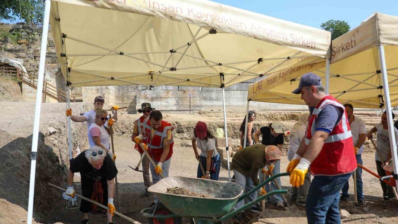Düzce Belediyesi’nin personel ve lojistik desteği ile Kültür ve Turizm Bakanlığı’nın izni sayesinde yıl boyunca kesintisiz devam eden Konuralp Antik Tiyatro kazılarına belediye birimlerinden çalışanların gönüllü desteği sürüyor. Hafta sonu yapılan kazılarda personeli ziyaret eden Düzce Belediye Başkanı Dr. Faruk Özlü, çalışmaya katkı veren belediye çalışanlarının geleceğe matuf bir eserde emekleri olduğuna dikkat çekti.