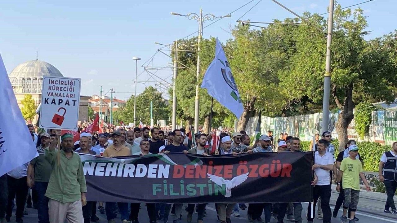 Konya Sivil Toplum Kuruluşları Platformu tarafından düzenlenen Gazze İçin Küresel Vicdan Yürüyüşü Kılıçarslan Meydanında başladı. Kalabalık, bayraklar ve sloganlar eşliğinde Mevlana Meydanına yürüdü. Burada basın açıklaması yapan Konya Sivil Toplum Kuruluşları Platformu Başkanı Adem Ceylan, tarihte en fazla bombanın atıldığı Gazze’de dünya tarihinin en büyük zalimlerine karşı direnişin devam ettiğini belirtti. Ceylan, "Direniş insanlıktan nasibi olan vicdanları yavaş da olsa, geç de olsa harekete geçirirken zalimlerin ve işbirlikçilerinin yıkılışını hızlandırıyor. Gazze’deki soykırıma dikkat çekmek, ablukayı delmek ve insani yardımların ulaşmasını sağlamak niyetiyle yola çıkan, Gazze’nin ilk kadın balıkçısının adı verilen ve vicdan hareketi olan Madleen Gemisinin yolculuğunu bir başlangıç olarak selamlarken katil siyonist çeteyi, terör devletini bir kez daha kınıyor, zulümlerinin hesabının er geç ama mutlaka sorulacağını hatırlatıyoruz" dedi.