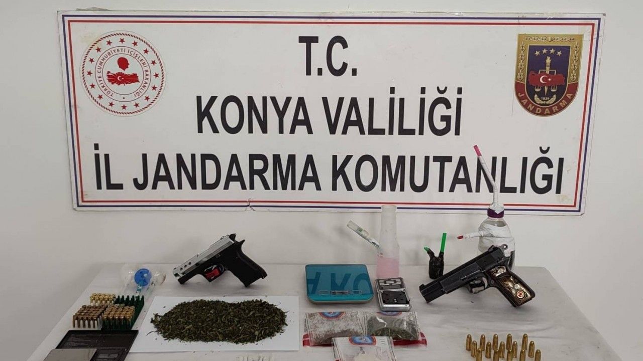 Konya’nın Çumra ilçesinde jandarmanın düzenlediği operasyonda çeşitli uyuşturucu maddeler ele geçirildi.