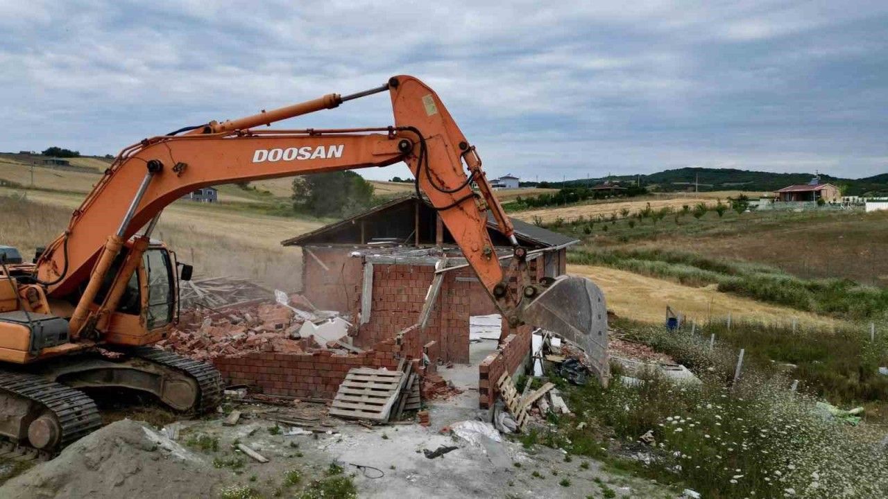 Ekipler, kırsal Cumaköy’de de tespiti gerçekleştirilen 3 ayrı kaçak yapının yıkımını gerçekleştirdi.