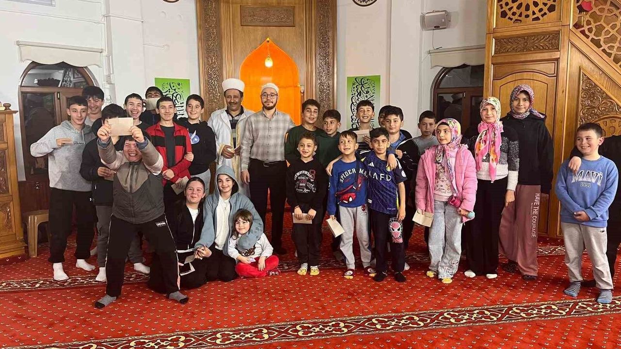İlçe Müftüsü Ahmet Karagöz, Din görevlileri Önder Gül ve Ramazan Erduran ve cami cemaatinin başlattığı 'Teravihlere gel bayram harçlığını al' projesi çerçevesinde Ramazan ayı boyunca teravihlere devam eden 40 çocuğa bayram harçlıkları son teravih namazının akabinde dağıtıldı. Çocukların sevinç ve mutluluklarının gözlerinden okunduğu harçlık dağıtımında konuşan din görevlileri, 'Bugün cemaatimizle birlikte sözümüzü yerine getirmenin, yavrularımızın Ramazan Bayramı'na sevinçle girmelerini sağlamanın mutluluğunu yaşıyoruz. 40 yavrumuza zarflar içerisinde çam sakızı çoban armağanı bayram harçlıklarını takdim ettik. Şimdiden başta çocuklarımız olmak üzere tüm kardeşlerimize mutlu huzurlu bayramlar diliyoruz. Bu güzelliği ve sevinci yaşatan cemaatimize katkılarından dolayı da ayrıca teşekkür ediyoruz.' ifadelerini kullandı. Bayram harçlıklarından dolayı mutlu olduklarını belirten çocuklar, büyüklerine ve hocalarına teşekkür etti.