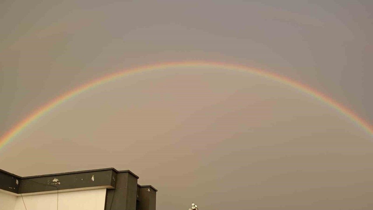 Adana’nın Kozan ilçesinde öğle saatlerinde etkili olan yağmurun ardından çifte gökkuşağı ortaya çıktı. Vatandaşlar, cep telefonlarıyla bu görsel şöleni görüntüledi. Gökyüzünde oluşan çifte gökkuşağı, Kozan manzarasıyla birleşince ortaya güzel kareler çıktı. Ömer Çeri adlı vatandaş, yağmurun ardından oluşan gökkuşağı manzarasının mest ettiğini kaydetti.