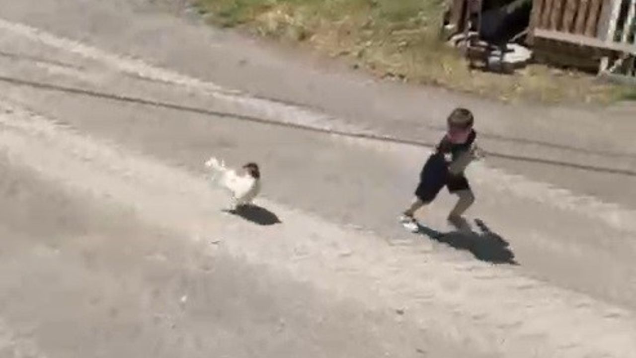 Eniştesinin köyünde tatilini geçiren Ömer Arda, bahçede gezen bir horozu fark etti. Çocukça bir merakla, horoza doğru uzaktan tekme savurarak onu korkutmaya çalışan Ömer Arda, ardından eline aldığı bir sopa ile horozu izlemeye devam etti. Ancak horoz, minik çocuğun bu hareketine tepkisiz kalmadı. Bir anda Ömer Arda’nın üzerine doğru hamle yapan horoz, beklenmedik ve bir o kadar da güldüren bir kovalamacayı başlattı.
