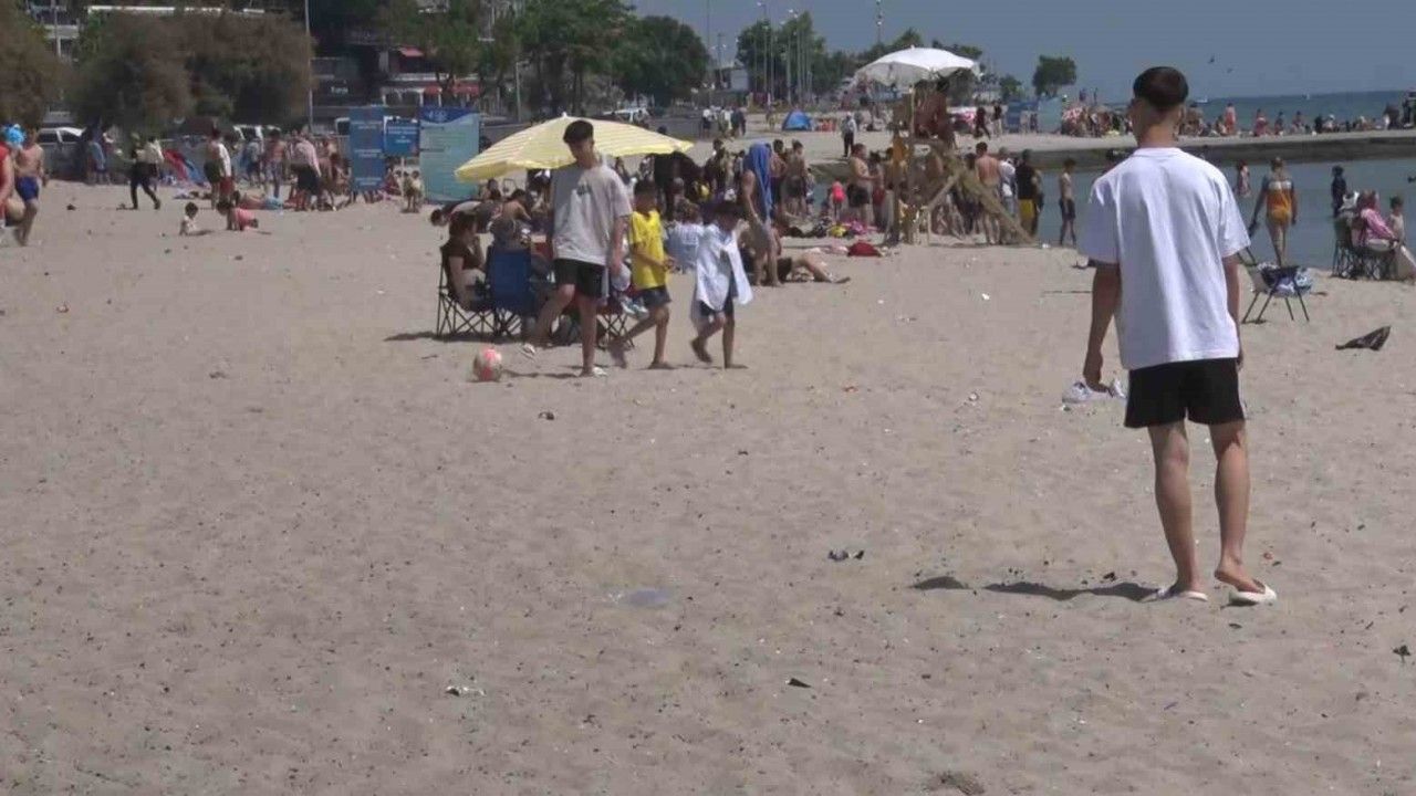 Küçükçekmece’de bayramın 2’nci gününde sıcaklardan bunalan vatandaşlar kendilerini sahile attı. Bayram tatilini fırsat bilen vatandaşlar, sıcak havada serinlemek için denize girerken bazı vatandaşlar da kumsalda güneşin keyfini çıkardı.