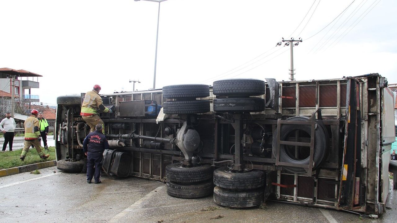 Manisa'nın Kula ilçesinde yağış nedeniyle kayganlaşan yolda kontrolden çıkan kamyonet devrildi. Kazada sürücü hafif yaralandı.