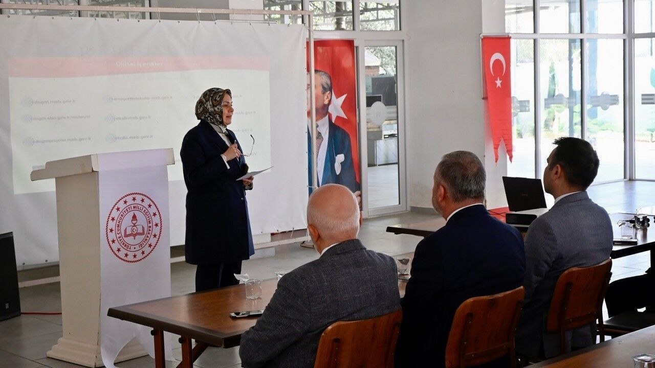 Aydın Efeler Kamp Merkezi’nde düzenlenen toplantının açılışını Milli Eğitim Bakan Yardımcısı Celile Eren Ökten yaptı. Program kapsamında Bakan Yardımcısı Celile Eren Ökten, ilçedeki eğitim kurumlarını da ziyaret etti. Ökten’e ziyaretlerinde İl Milli Eğitim Müdürü Mehmet Yiğit ve Kuşadası İlçe Milli Eğitim Şube Müdürü Hanifi Çelik eşlik etti. Ziyaretler çerçevesinde Güvercinada Mesleki ve Teknik Anadolu Lisesi Uygulama Tesisi ile Halk Eğitim Merkezi incelendi. Bakan Yardımcısı Ökten, kurum yöneticilerinden çalışmalar hakkında bilgi aldı.