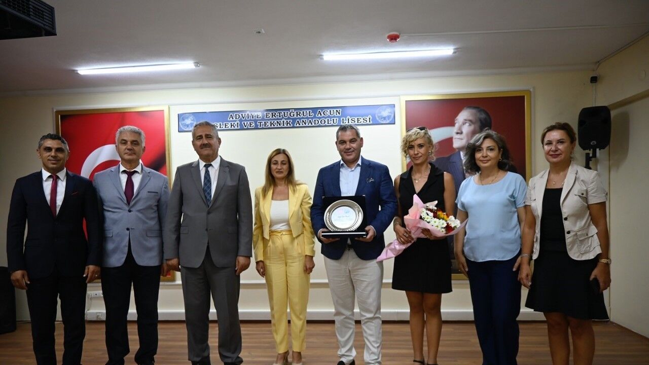 Kuşadası İlçe Milli Eğitim Müdürü İbrahim Ataman’ın katılımıyla Adviye Ertuğrul Acun Mesleki ve Teknik Anadolu Lisesi’nde program düzenlendi. Programda, okulun boya ve tadilat işlerini üstlenen hayırsever Özel Ünsal’a, İlçe Milli Eğitim Müdürü Ataman tarafından plaket takdim edildi. Yapılan çalışmalarla öğrenciler için daha iyi bir eğitim ortamı oluşturulduğu belirtilirken, İlçe Milli Eğitim Müdürü İbrahim Ataman bu güne kadar eğitime katkı sunan tüm hayırseverlere teşekkürlerini iletti. Kuşadası İlçe Milli Eğitim Müdürlüğü tarafından yapılan açıklamada, "Eğitime verilen her destek, geleceğimize yapılan en değerli yatırımdır. Öğrencilerimizin daha iyi şartlarda eğitim alması için katkı sağlayan hayırseverlerimize minnettarız" ifadelerine yer verildi.