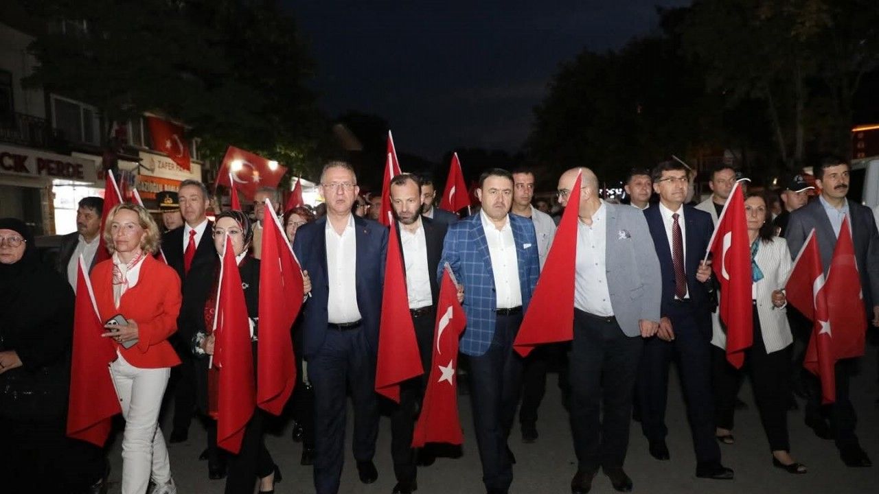 Vali Musa Işın’ın katılımıyla düzenlenen yürüyüş, mehter takımı eşliğinde Ulu Cami önünden başlayarak Zafer Meydanı’nda sona erdi. Ellerinde dev Türk bayrakları taşıyan vatandaşlar, yürüyüş boyunca demokrasiye ve milli iradeye sahip çıkma kararlılıklarını bir kez daha güçlü şekilde gösterdi.