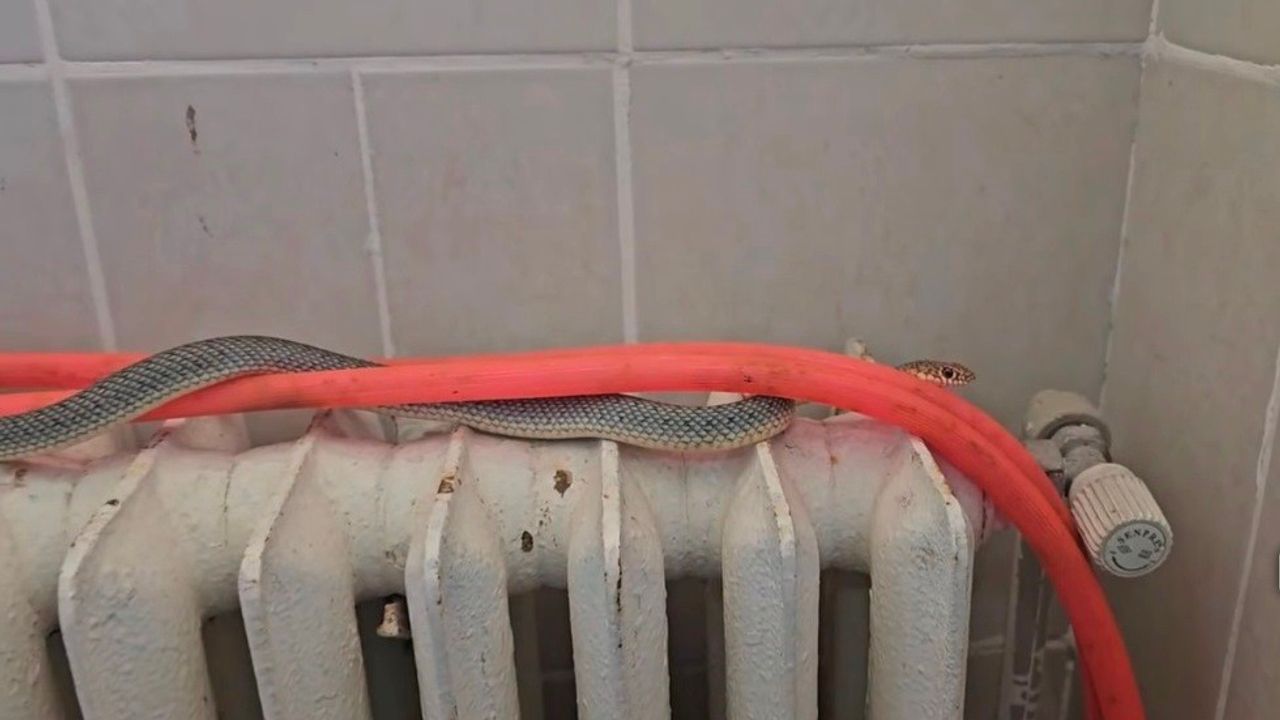Kütahya’da bir restoranın tuvalet bölümüne giren yaklaşık 2 metrelik yılan paniğe neden oldu.
