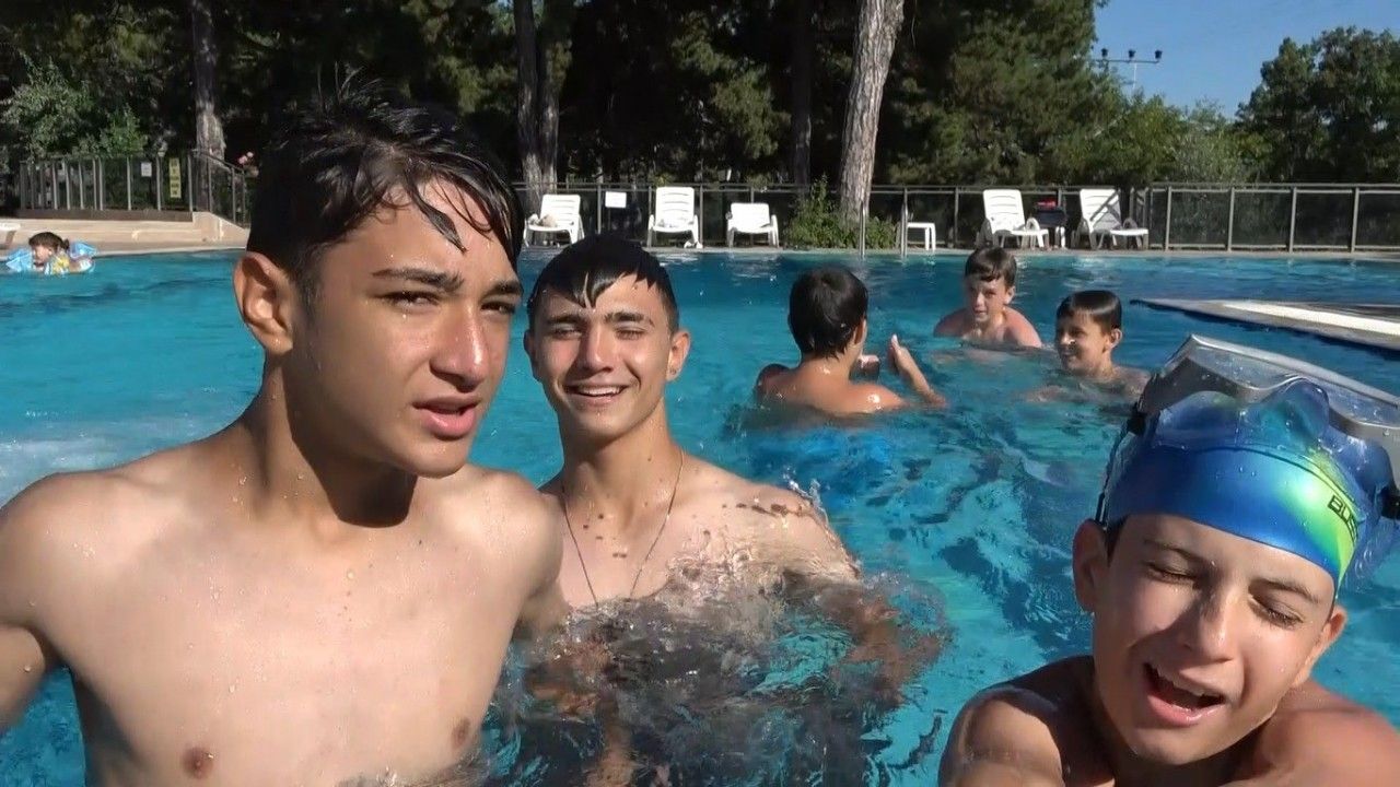 Vatandaşlar, termal havuzlarda gün boyu hem eğleniyor hem de serinlemenin keyfini çıkarıyor.