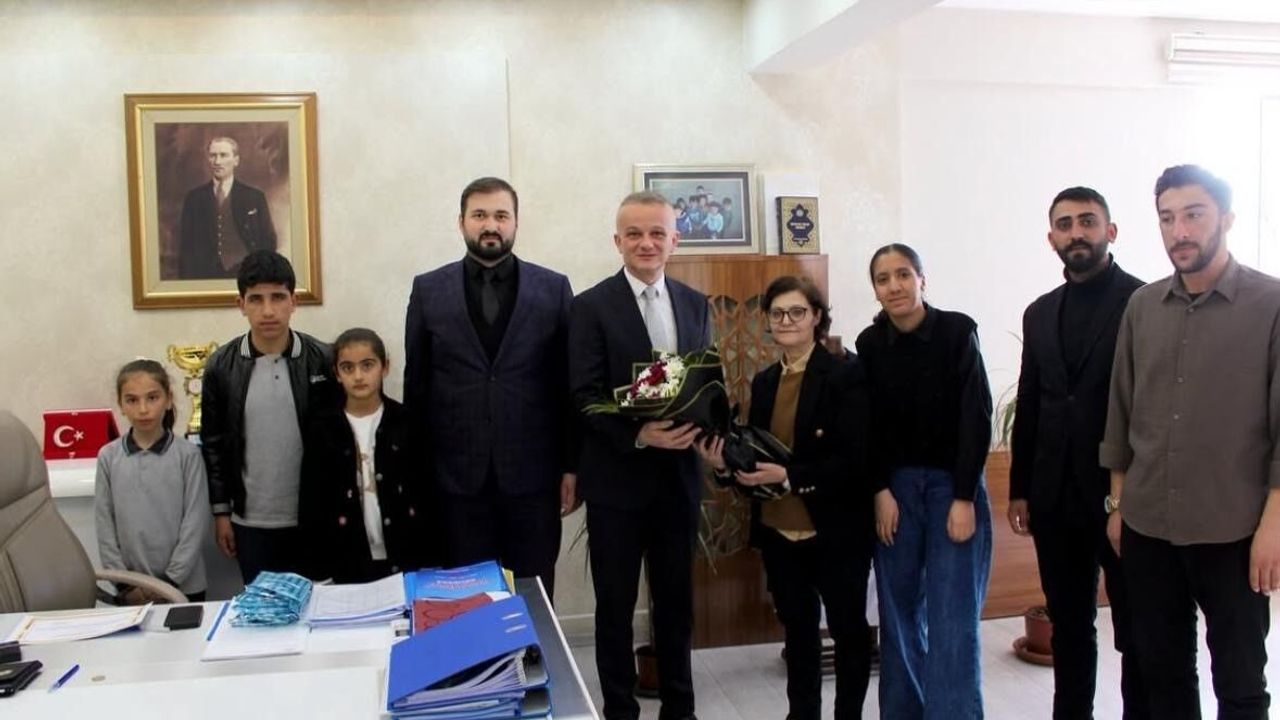Kütüphaneler Haftası Kapsamında Hamur ilçe Halk Kütüphanesi Müdürü Zehra Acar, kütüphane personeli ve beraberindeki öğrencilerle birlikte Kütüphane Haftası münasebetiyle Hamur Kaymakamı Erkan Minuz'u makamında ziyaret etti.