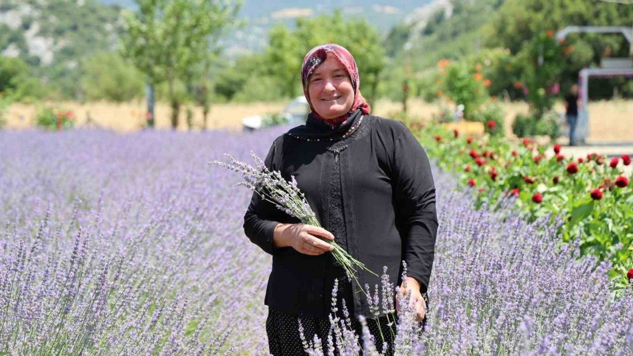 Tenkerli Mahallesi’nden Bedia Arı devlet desteği ile 5 dönümlük arazide lavanta üretimi yaptıklarını belirterek, "Devlet desteğiyle lavanta bahçesi kurduk. Her gün yüzlerce kişi geliyor. Gelen bir daha geliyor. Çiçekleri çok severdim. Bu iş emek istiyor ama çok güzel. Lavanta demetlerini 30 TL’den satıyoruz. Çok mutluyuz" dedi.