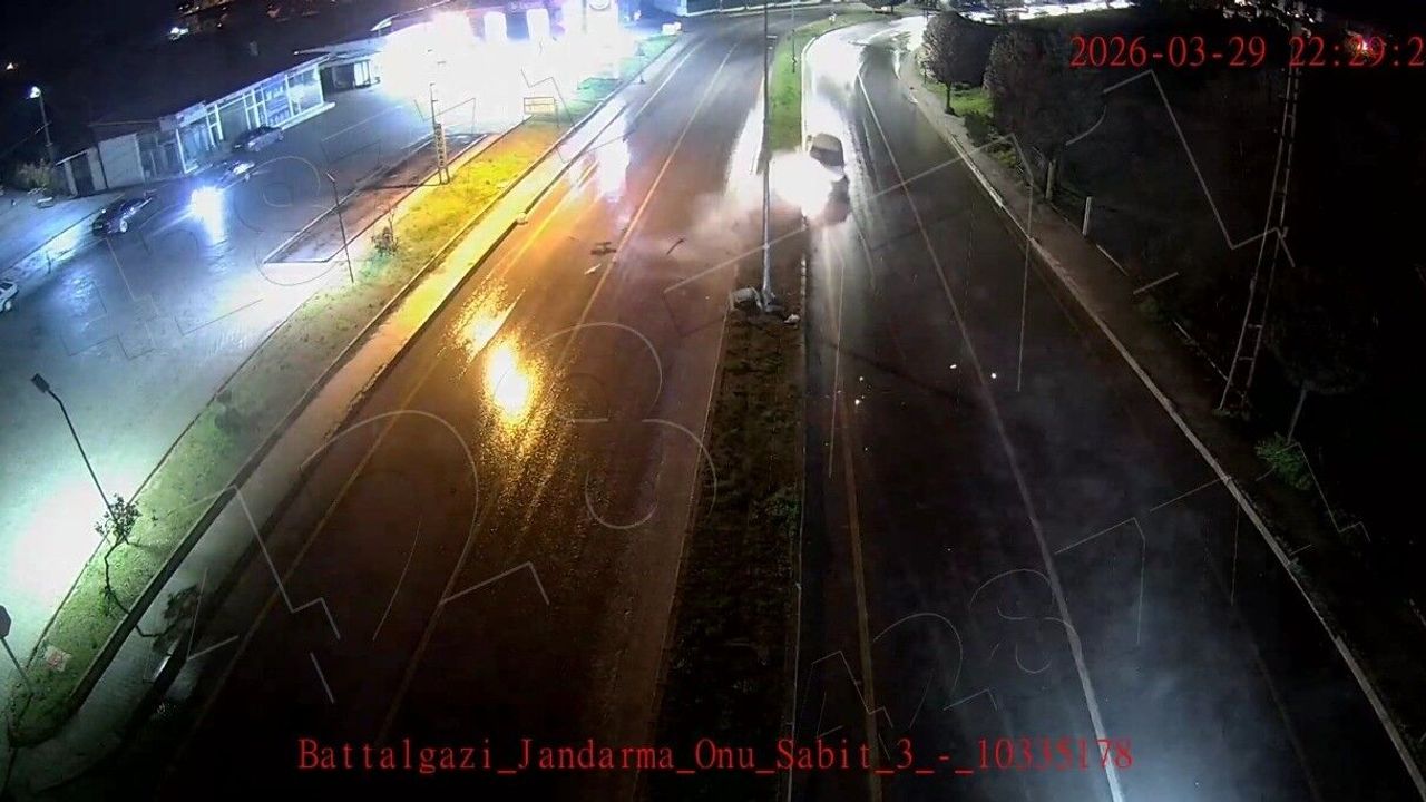 Kaza, 29 Mart Pazar günü saat 22.30 sıralarında Battalgazi İlçe Jandarma Komutanlığı mevkiinde meydana geldi. İlçe merkezi istikametine seyir halinde olan otomobil, sürücüsünün kontrolünden çıkarak önce orta refüje ardından aydınlatma direğine çarptı. Çarpmanın etkisiyle savrulan araçta yaşanan kaza anı Kent Güvenlik Yönetim Sistemi (KGYS) kameralarınca saniye saniye kaydedildi.