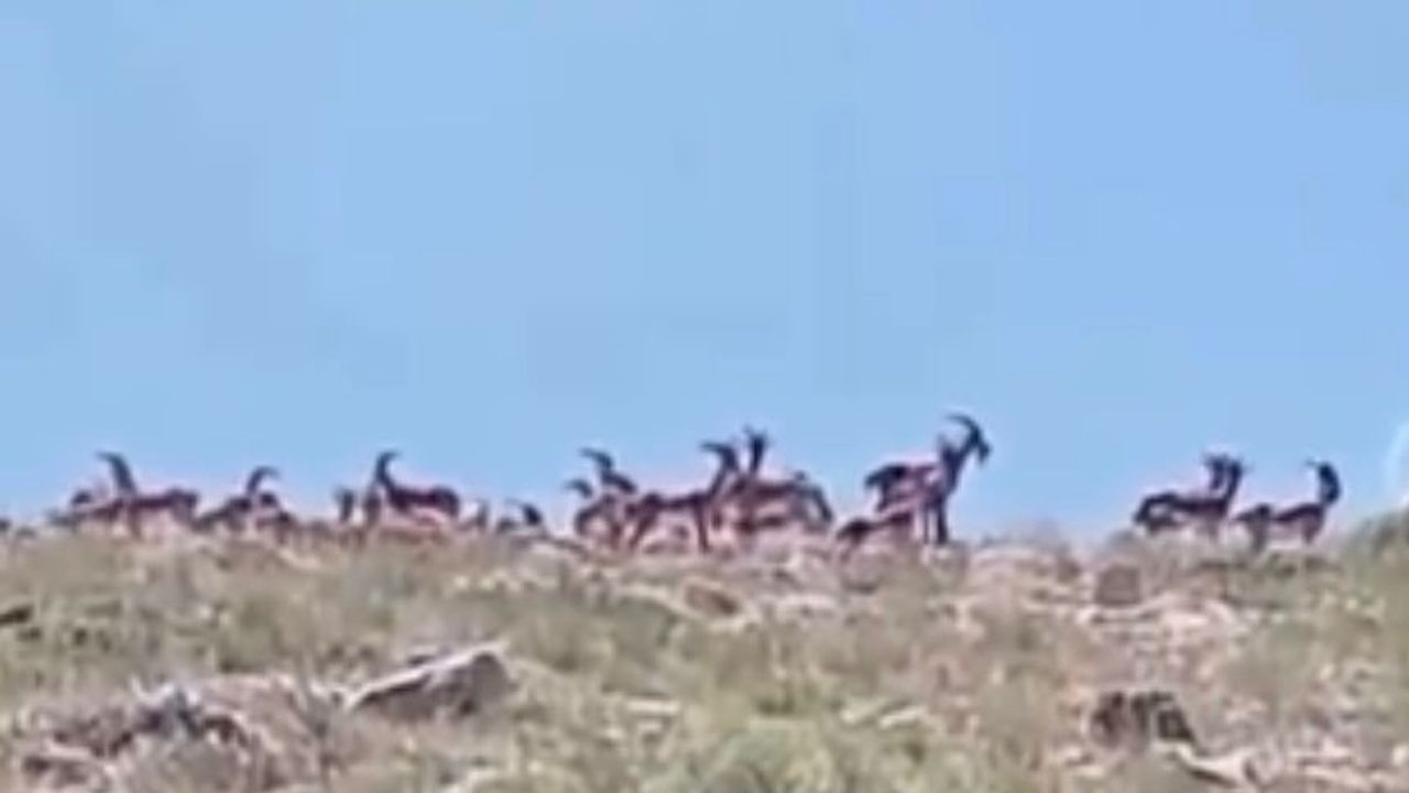 Türkiye’de nesli tükenme tehlikesi altında olduğu için koruma altında olan yaban keçileri, Malatya’nın Akçadağ ile Doğanşehir ilçelerindeki dağlık alanda sürü halinde görüntülendi.