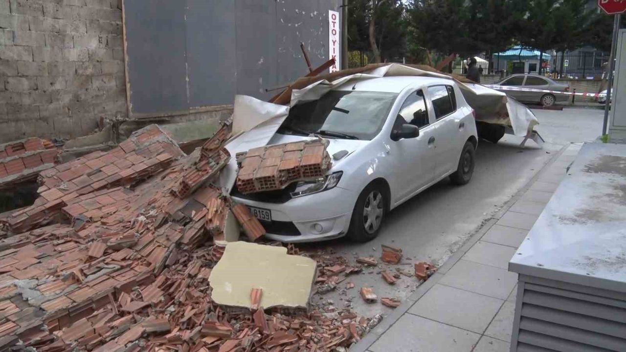 Maltepe'de bir inşaat şantiyesinin duvarı, kuvvetli fırtınanın etkisiyle seyir halindeki bir otomobilin üzerine yıkıldı. Kazada şans eseri ölen ya da yaralanan olmazken, araçta maddi hasar meydana geldi.