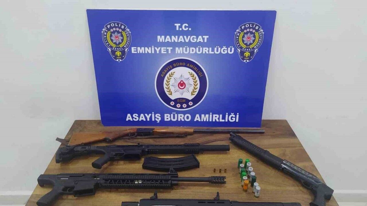 Manavgat Cumhuriyet Başsavcılığının talimatıyla İlçe Emniyet Müdürlüğü Asayiş Büro Amirliği, Kaçakçılık ve Organize Suçlarla Mücadele Büro Amirliği ve Narkotik Büro Amirliği ekiplerince; 25 ekip 116 personelin katılımıyla 19 adrese yönelik eş zamanlı operasyon yapıldı. Belirlenen adreslere düzenlenen operasyonlarda yapılan aramada 4 ruhsatsız av tüfeği, pompalı tüfek, 14 adet dolu kartuş, 3 9*19 mm çapında tabanca fişeği, 1 kullanımlık sentetik kannabinoid A4 maddesi ve cam aparat ele geçirildi. Operasyonda 6 şüpheli gözaltına alındı