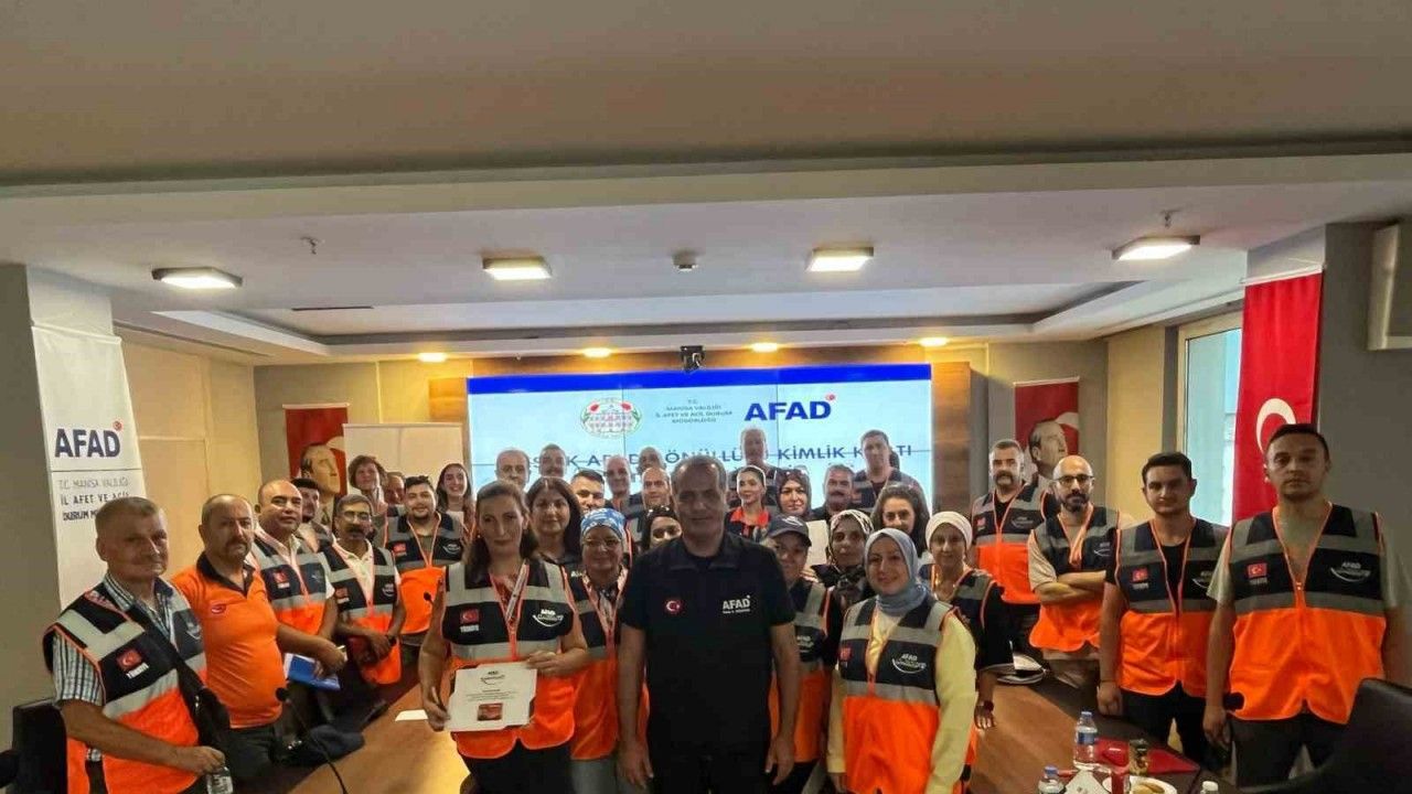 Manisa genelinde yaklaşık 900 kişilik gönüllü havuzunun parçası olan 50 Destek AFAD Gönüllüsü, kimlik kartlarını AFAD İl Müdürü Osman Pıhtılı’nın elinden aldı.