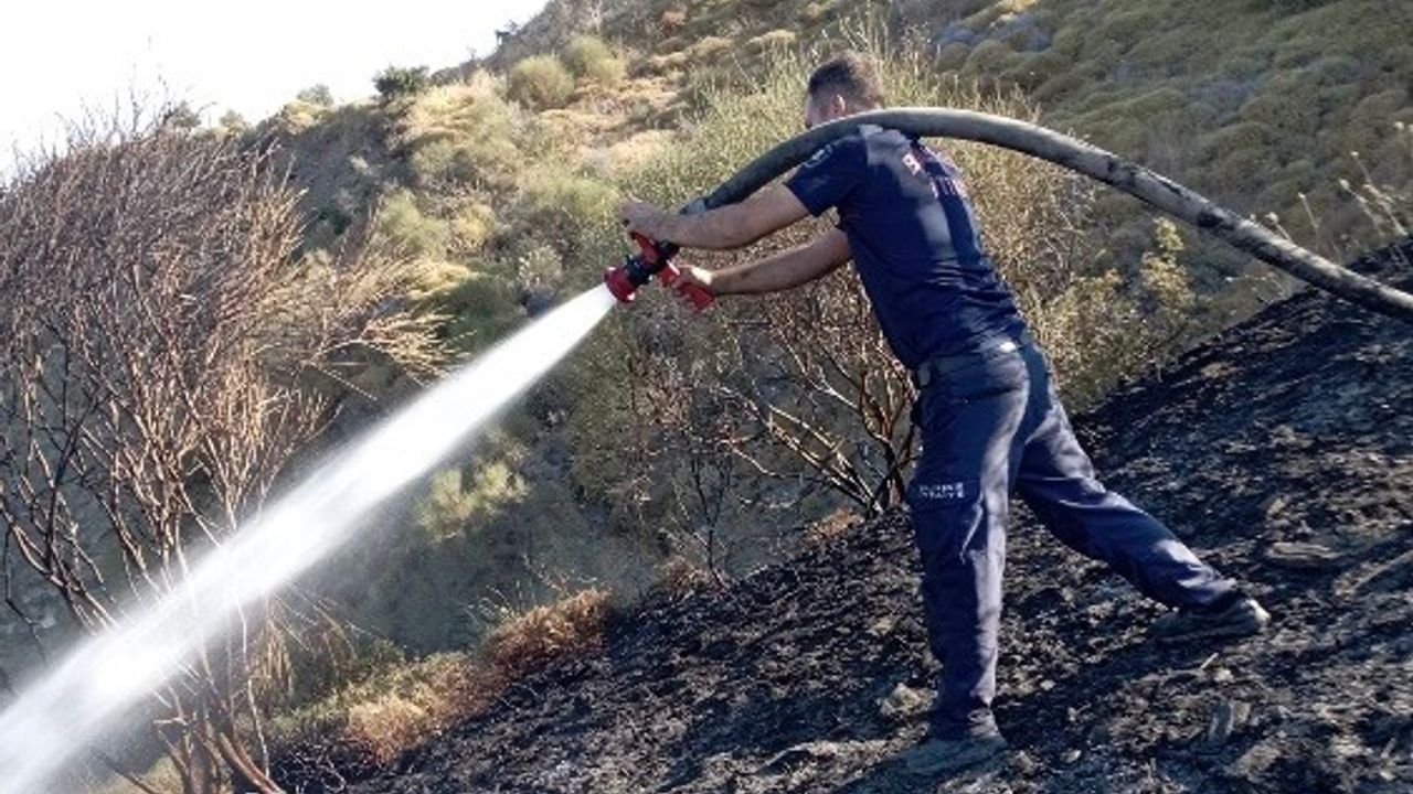 Balıkesir’in Marmara Adası ilçesine bağlı Çınarlı Mahallesi liman mevkiinde çıkan arazi yangını, ekiplerin müdahalesiyle kontrol altına alınarak söndürüldü.