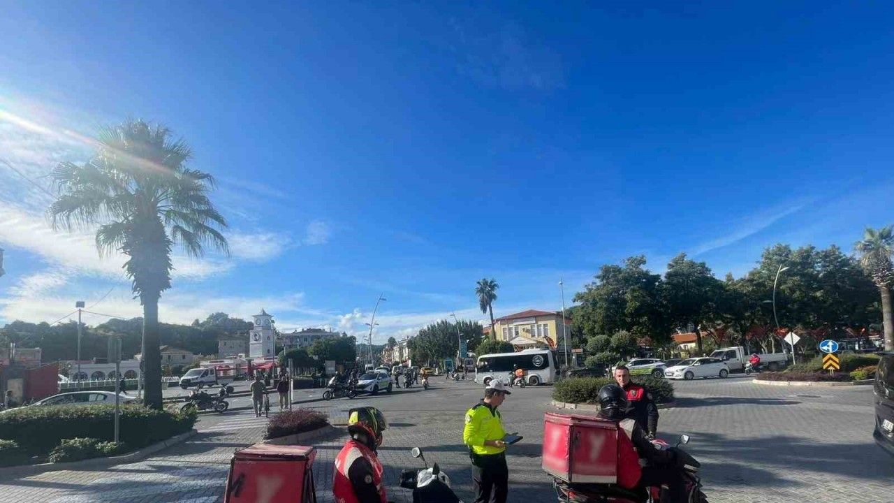 Muğla’nın Marmaris ilçesinde trafik ekipleri motorlu kuryelere yönelik yetki belgesi ve kask denetimi yaparken, sürücülere hız ve dikkat konusunda uyarılarda bulunuldu.