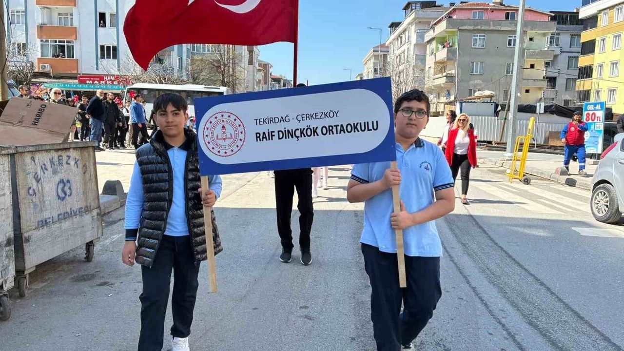 Tekirdağ'da 23 Nisan'da ortaokul bando takımının marşlar eşliğinde gerçekleştirildiği yürüyüş renkli görüntülere sahne oldu.