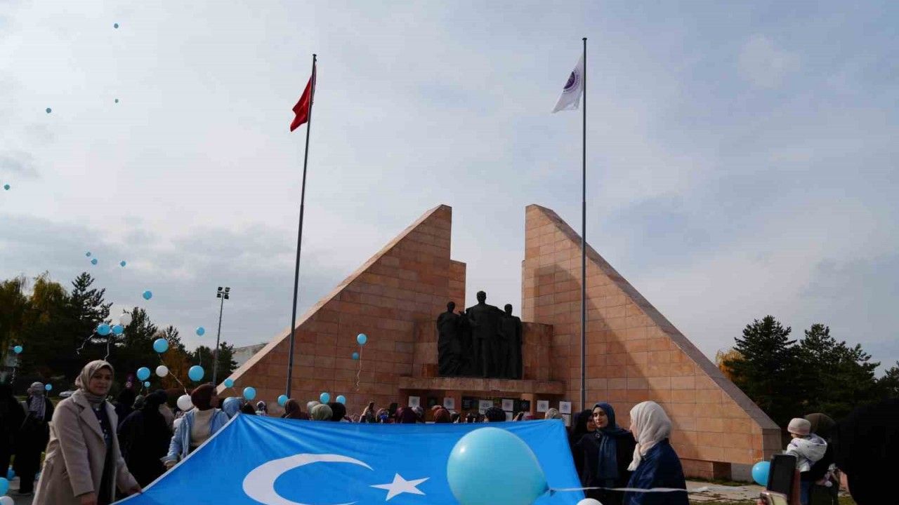 Atatürk Üniversitesi İlahiyat Fakültesi öğrencileri, gökyüzüne mavi beyaz balonlar bırakarak Doğu Türkistan’da yaşanan zulme dikkat çekti.
