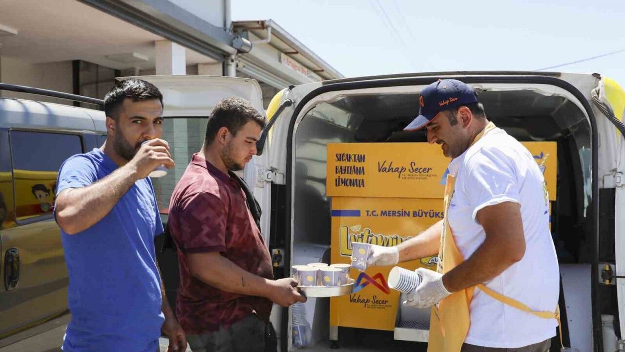 Mersin Büyükşehir Belediyesi, yaz sıcaklarında emekçilerin yanında olmaya devam ediyor. Sanayi ve hal bölgelerinde 5 yıldır süren limonata ikramı kapsamında bu yıl şimdiye kadar 120 bin bardak limonata dağıtıldı.