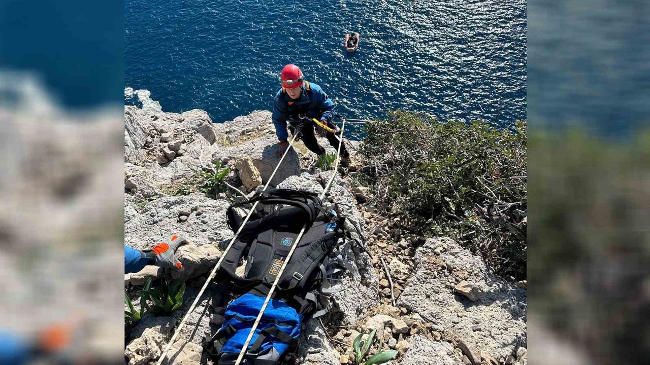 Mersin'de sarp kayalıklarda mahsur kalan keçi, itfaiyenin karadan ve denizden yürüttüğü nefes kesen operasyonla kurtarılarak sahibine teslim edildi.