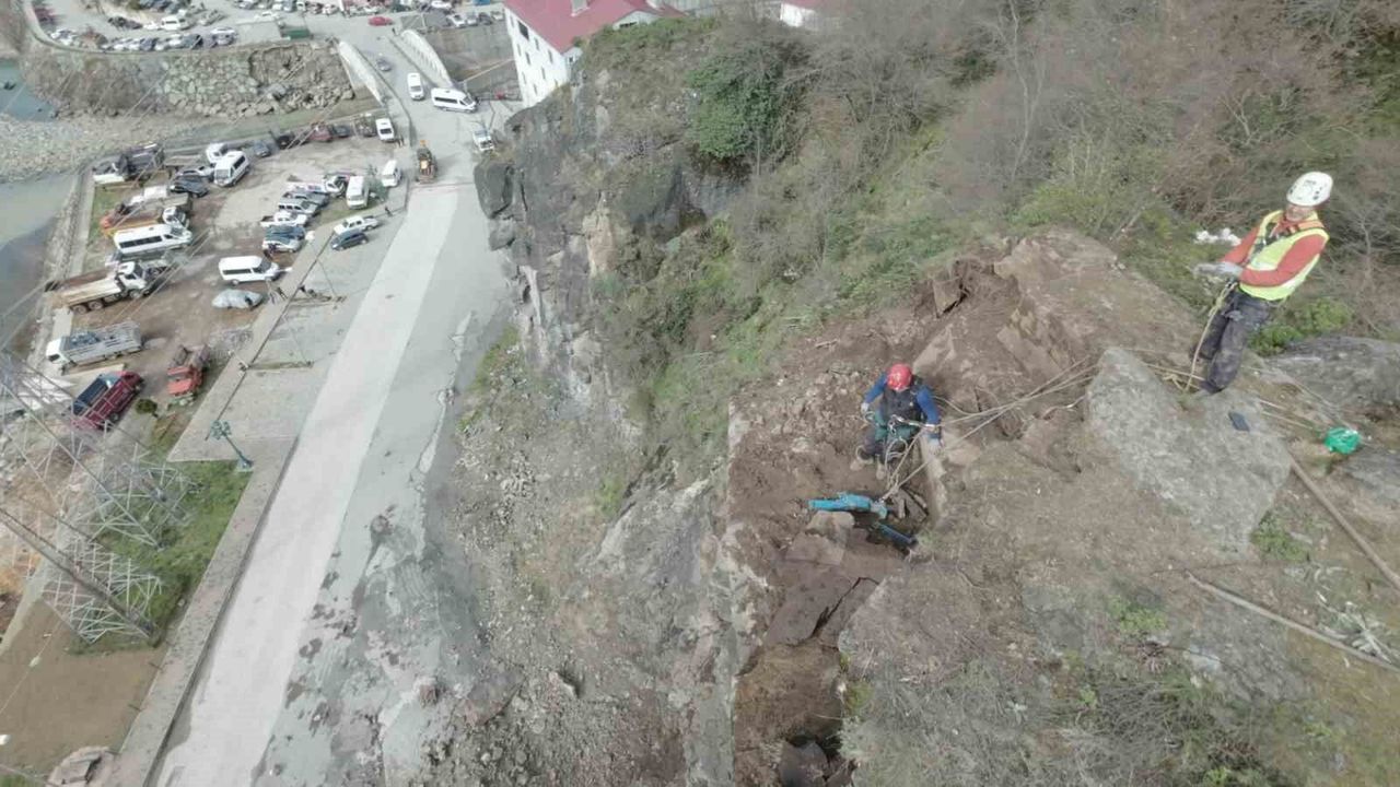 Zorlu arazi şartlarında çalışan ekipler, kriko ve levye gibi özel ekipmanlar kullanarak tonlarca ağırlıktaki kaya parçalarını kontrollü şekilde bulunduğu yerden düşürdü. Çalışmalar sırasında yol ve çevrede herhangi bir risk oluşmaması için geniş güvenlik önlemleri alınırken, dev kayaların temizlenmesiyle bölgede ulaşım güvenliği sağlandı.