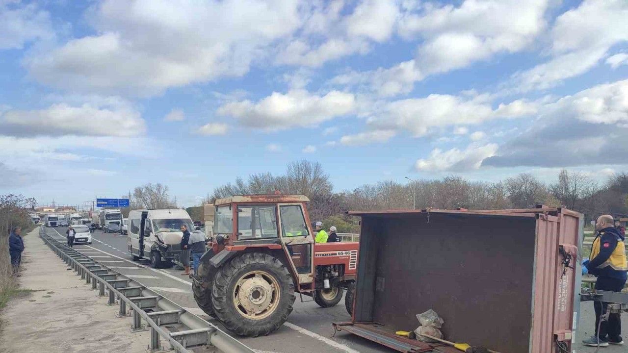 Edirne’nin Keşan ilçesinde meydana gelen kazada traktörün römorkuna çarpan midibüsteki bir yolcu yaralandı.