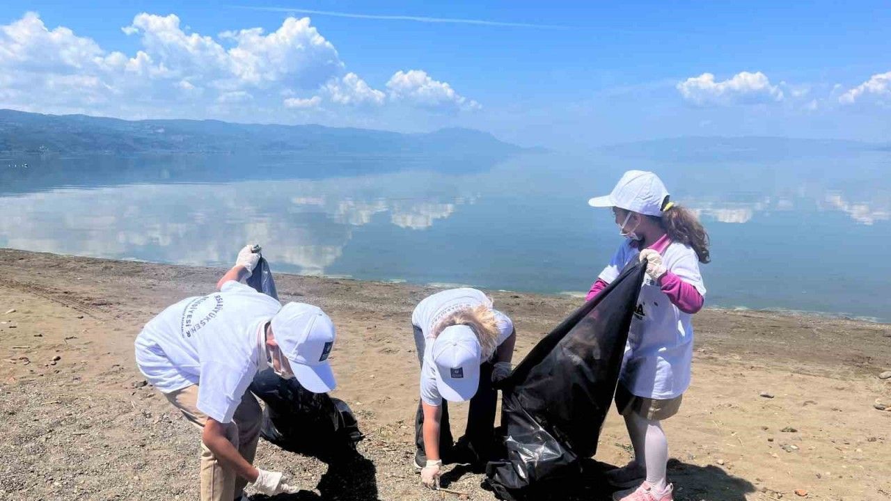 Bursa Büyükşehir Belediyesi’nin ‘Doğa için buluşuyoruz’ temasıyla düzenlediği ‘Çevre Haftası Şenliği’ kapsamında ilkokul öğrencileri tarafından İznik İnciraltı Halk Plajı’nda kıyı temizliği yapıldı.